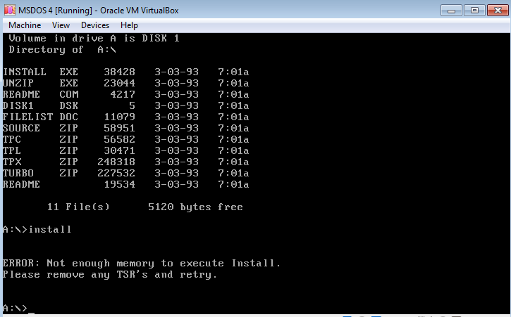 I don’t have any experience with DOS versions older than 5, so I’m at a bit of a loss as to what to do. There’s no “mem” command, there’s no HIMEM.SYS or anything. How do you install and run anything?